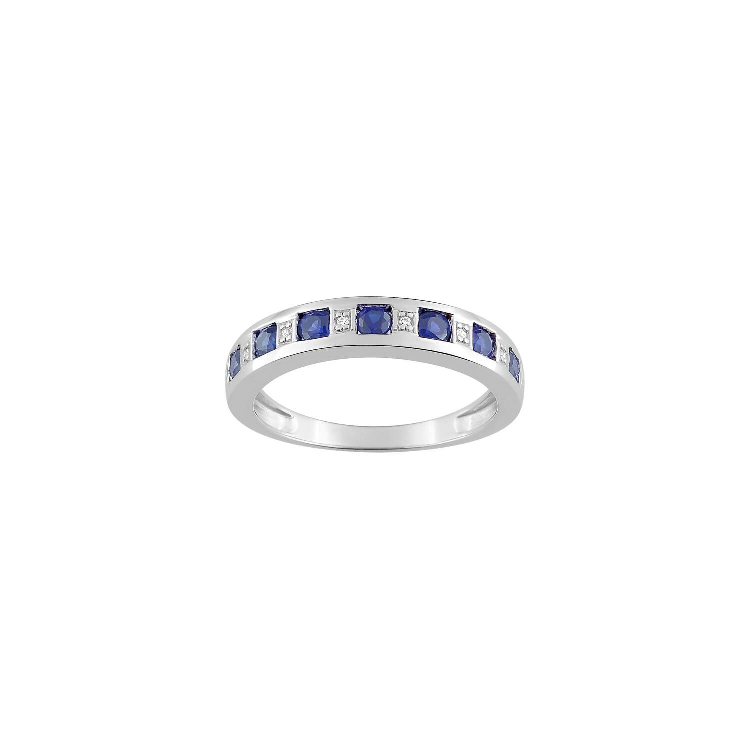 Bague en or blanc, diamants et saphir