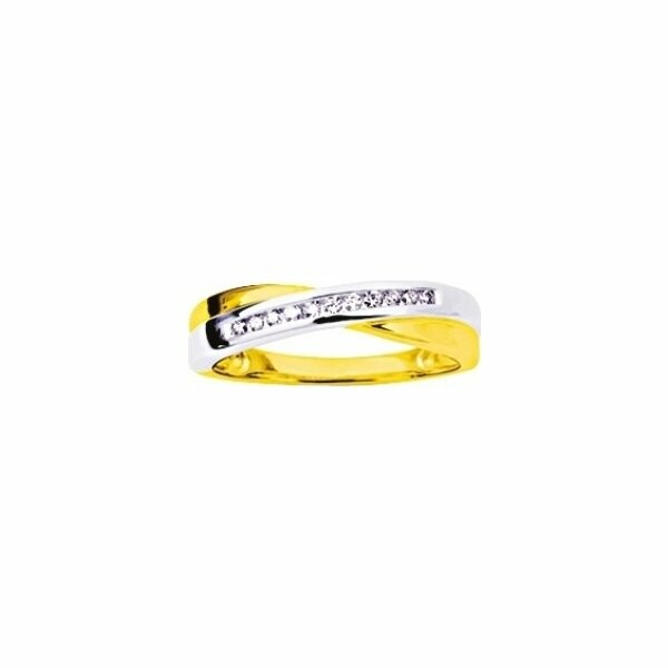 Bague en or jaune, rhodium et diamants 0.11ct