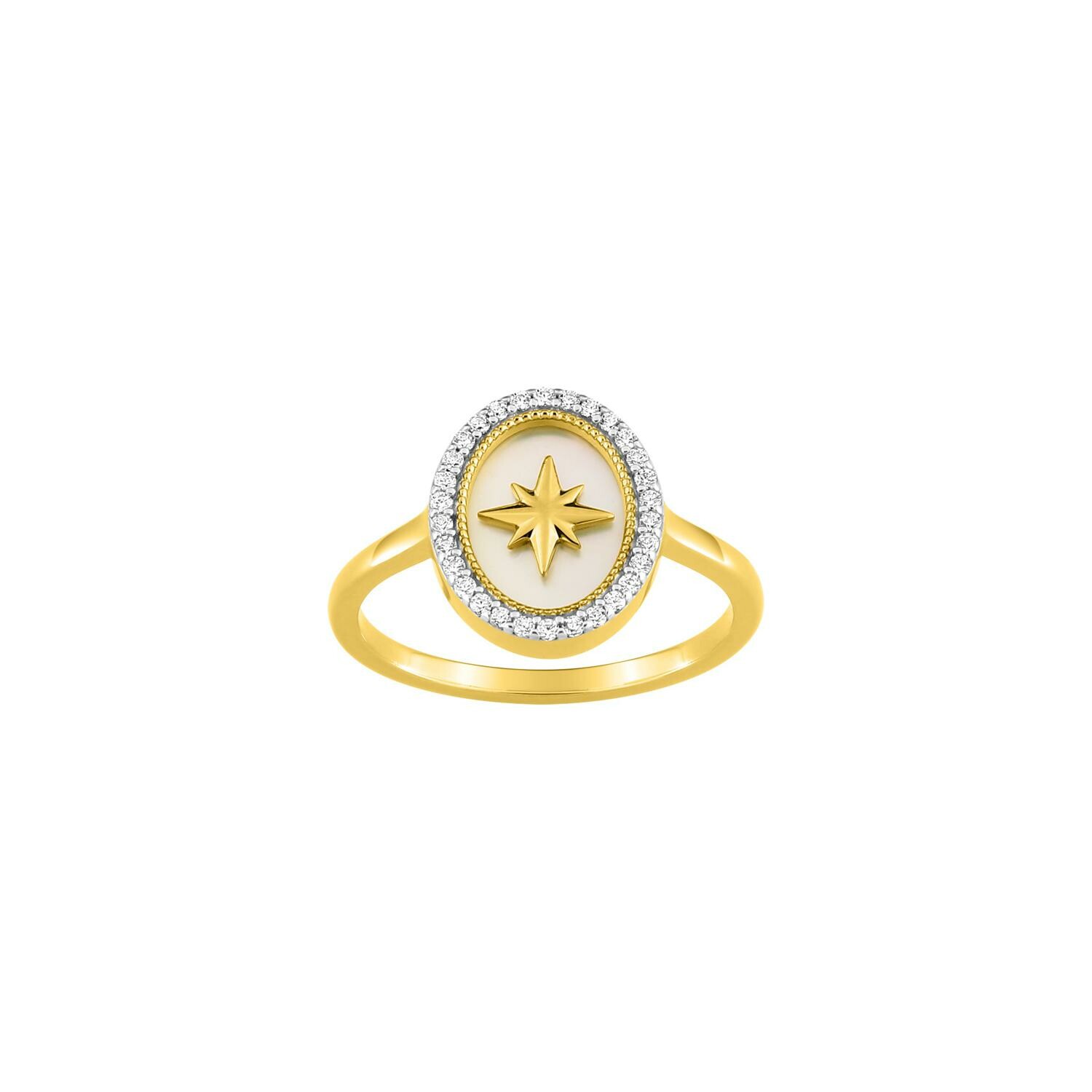 Bague en plaqué or, oxyde de zirconium et nacre