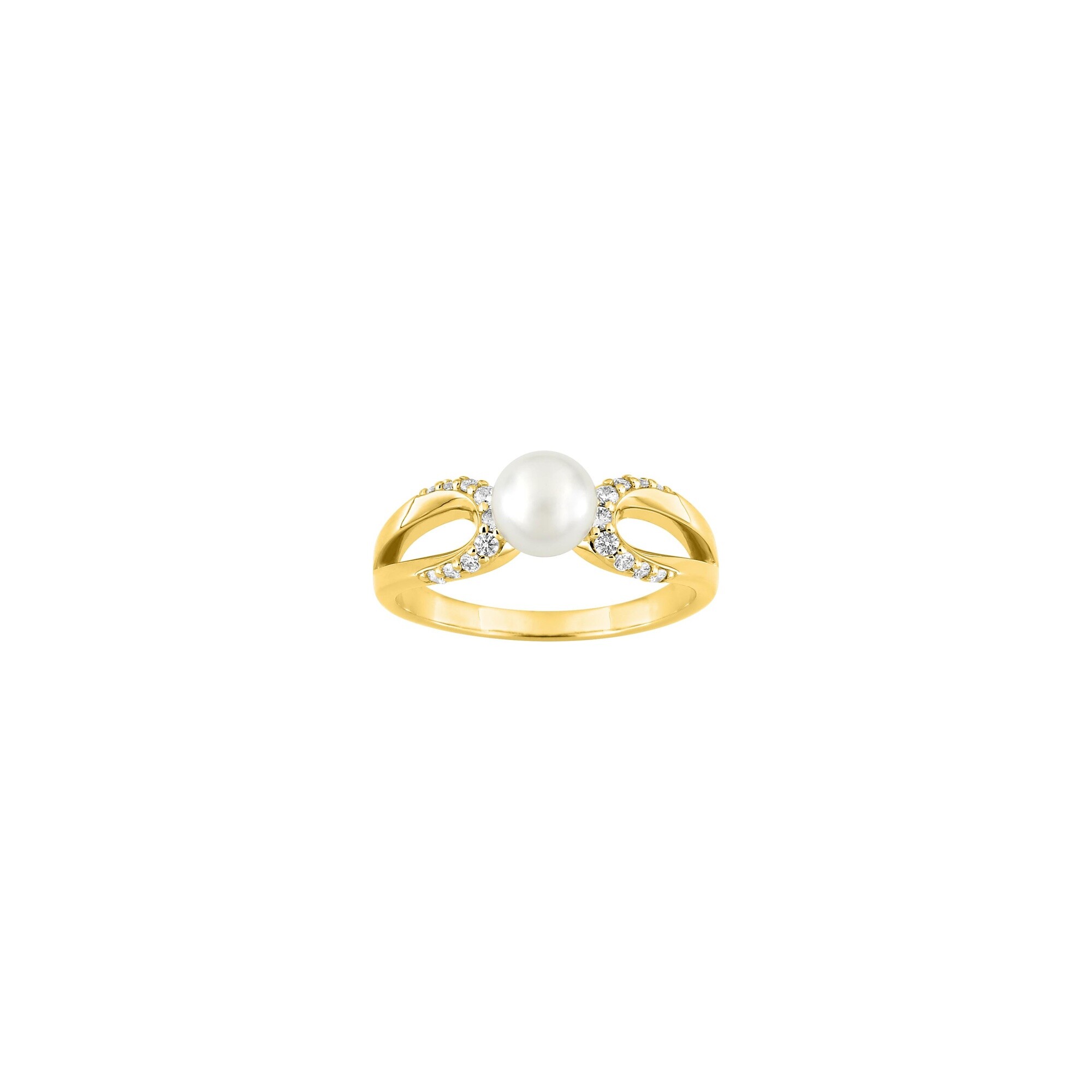 Bague en plaqué or, perle et oxyde de zirconium