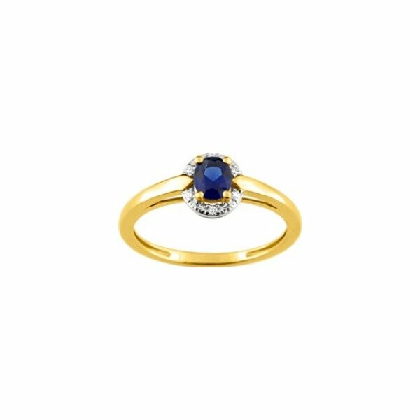 Bague en plaqué or, rhodium, saphir synthétique et oxyde de zirconium