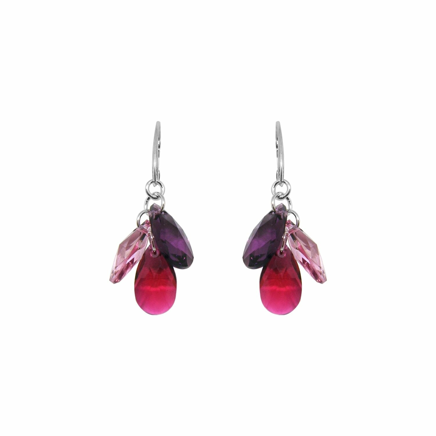 Boucles d'oreilles dormeuses Indicolite Fleur en argent rhodié et cristaux