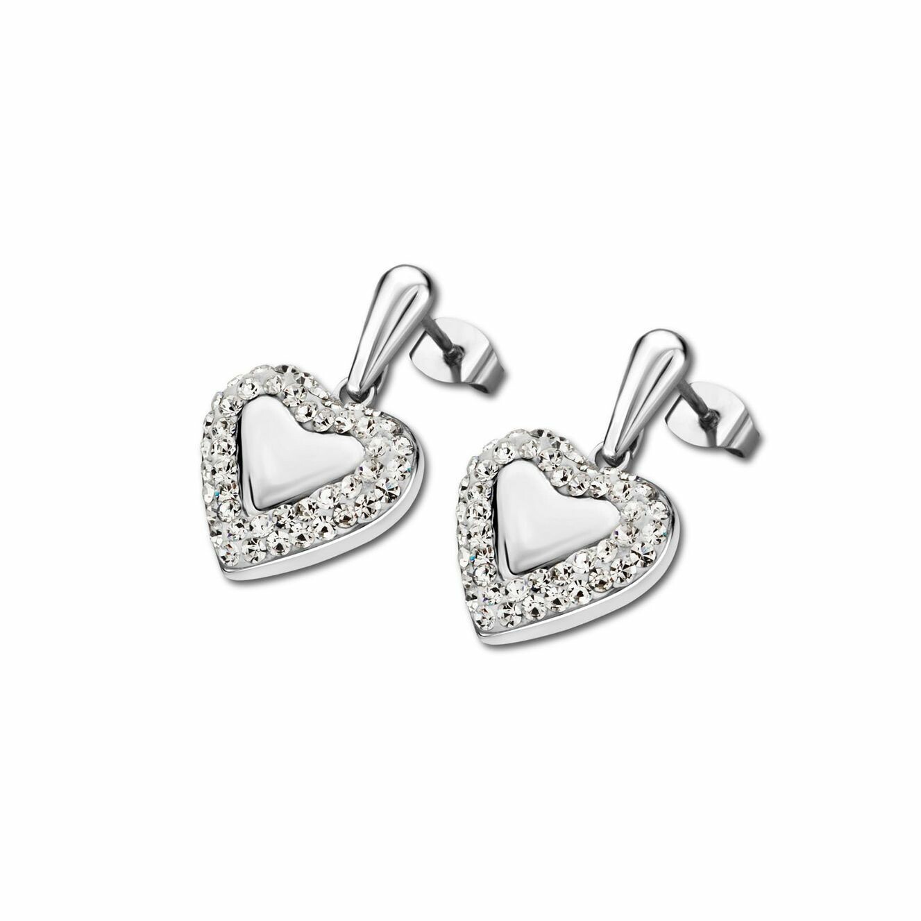 Boucles d'oreilles Lotus coeur en acier et oxyde de zirconium