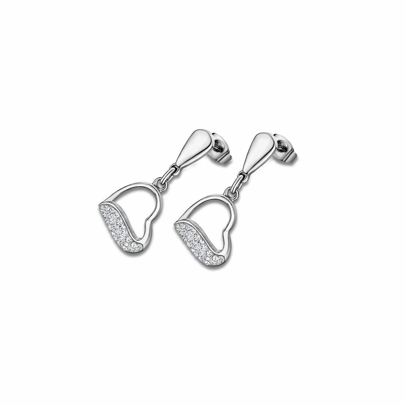 Boucles d'oreilles Lotus coeur en acier et oxyde de zirconium