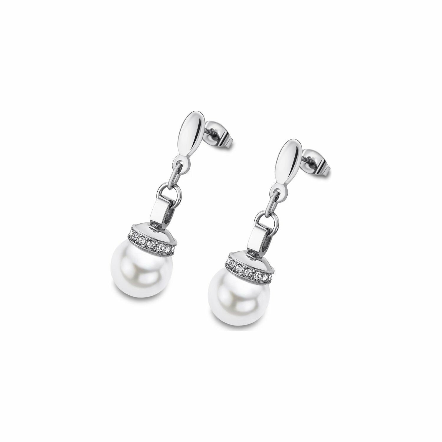 Boucles d'oreilles Lotus Style en acier, oxydes de zirconium et perle