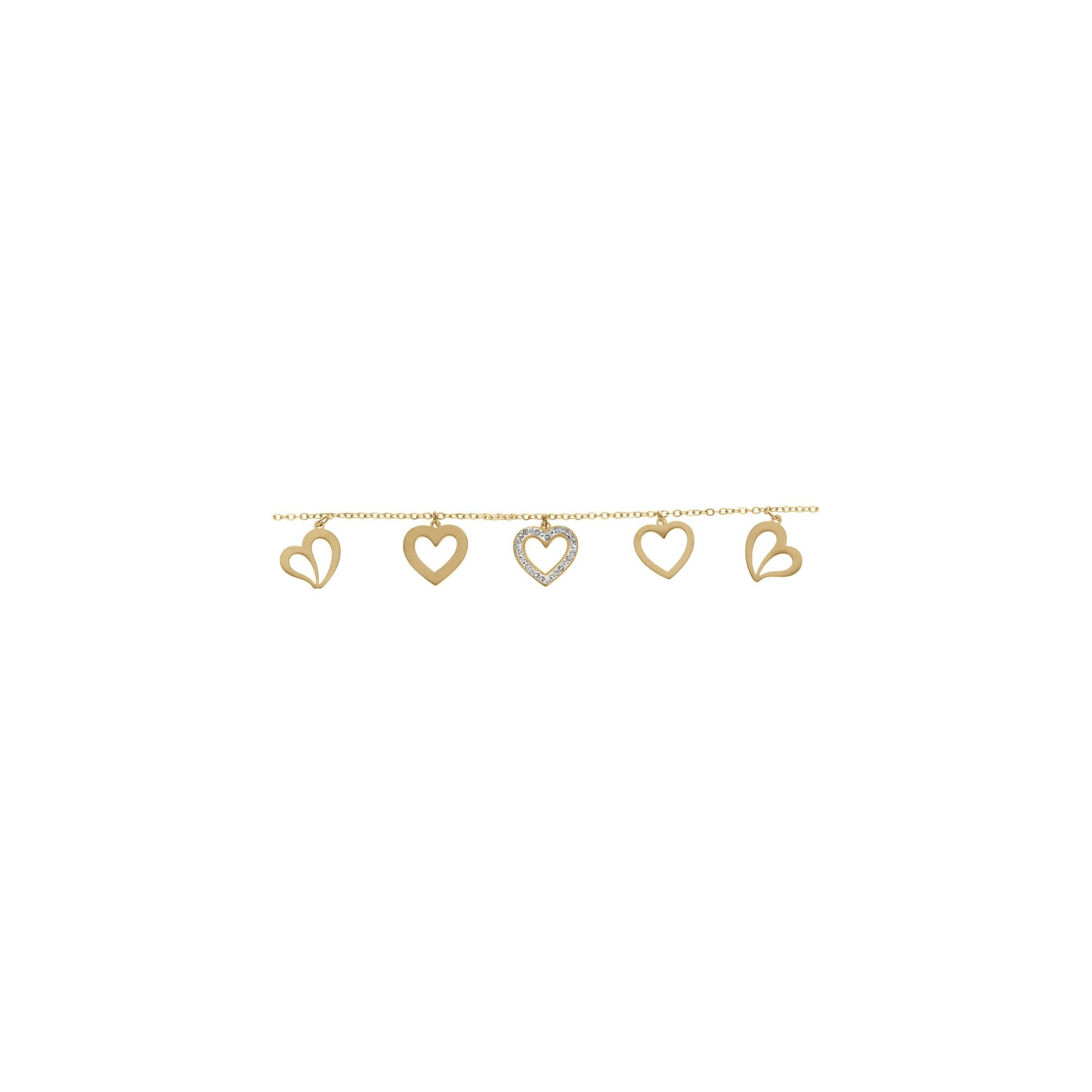 Bracelet acier pvd doré pampille 5 coeurs dont 1 avec résine et strass 16+3cm
