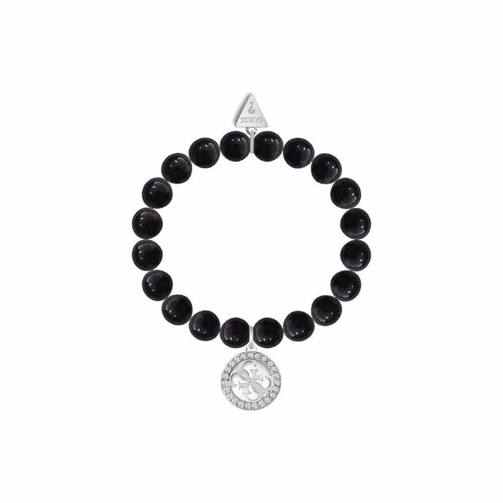 Bracelet GUESS Color Vibes en acier rhodié, perles noires et cristaux Swarovski