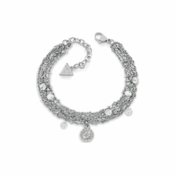 Bracelet Guess Galactic Girl en acier rhodié et cristaux Swarovski, avec multi chaînes et cristaux