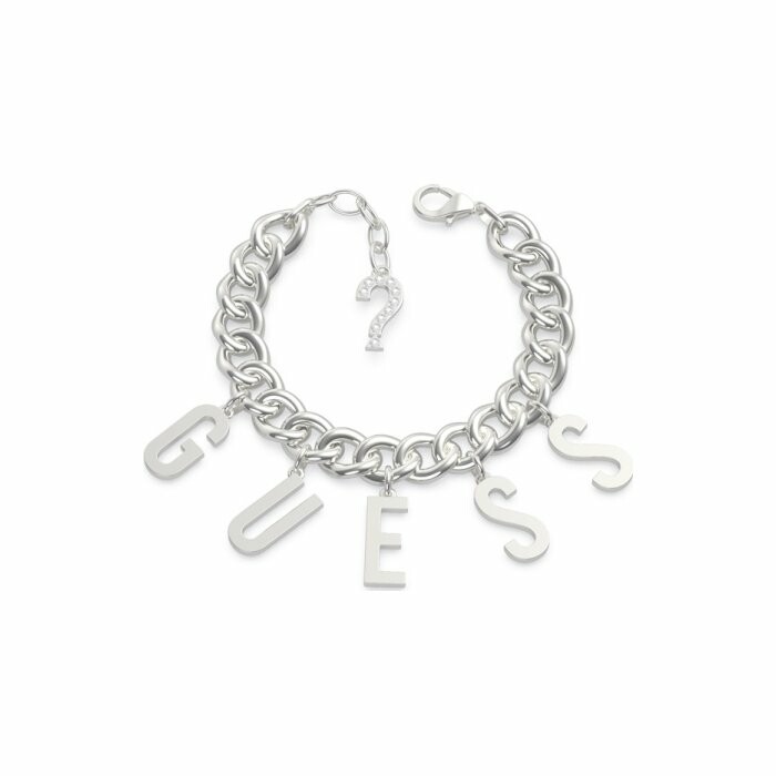Bracelet Guess Los Angeles en acier rhodié, pampilles et logo GUESS