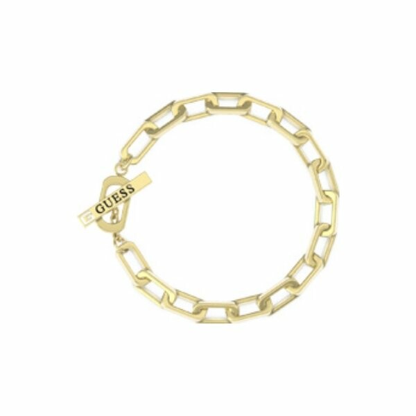 Bracelet Guess Urban Legend en acier doré, mailles ovales et fermoir en T avec logo GUESS