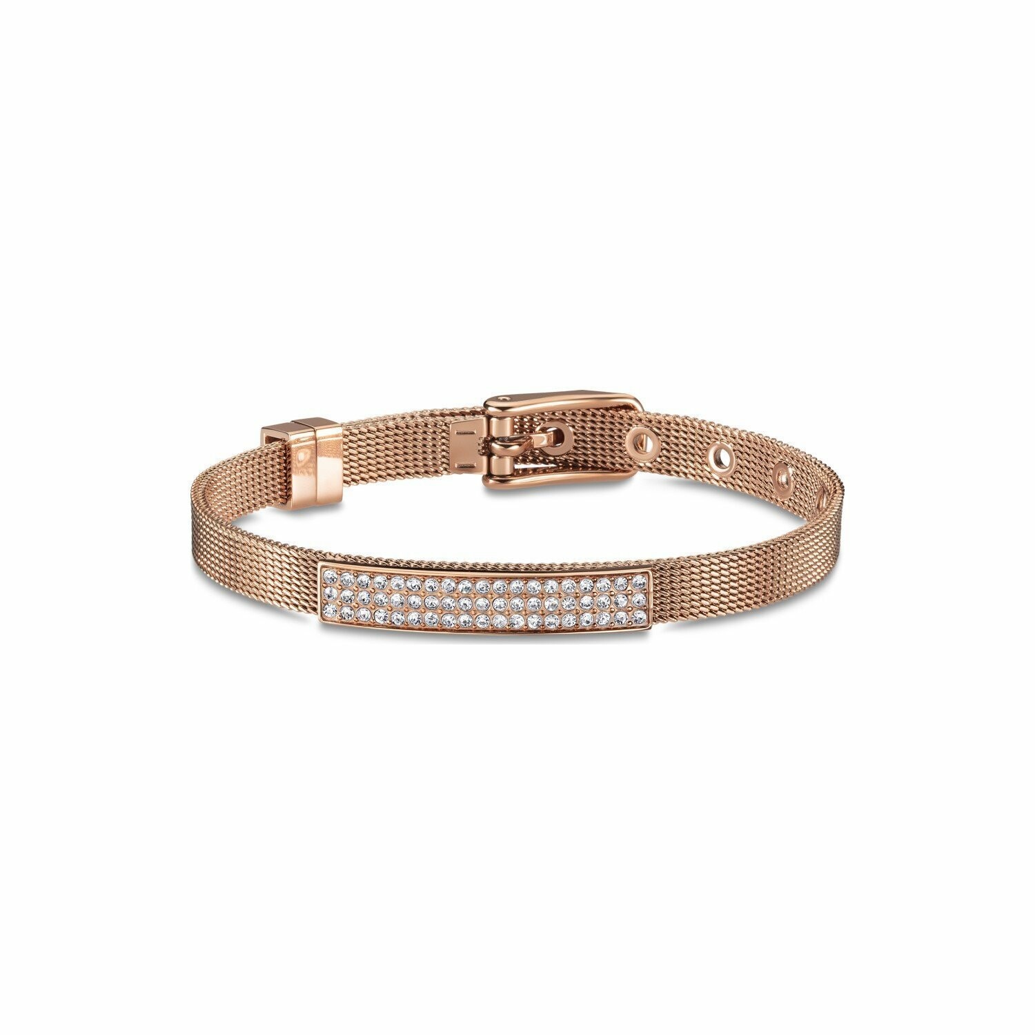 Bracelet Lotus Style Bliss en acier, métal doré rose et oxydes de zirconium