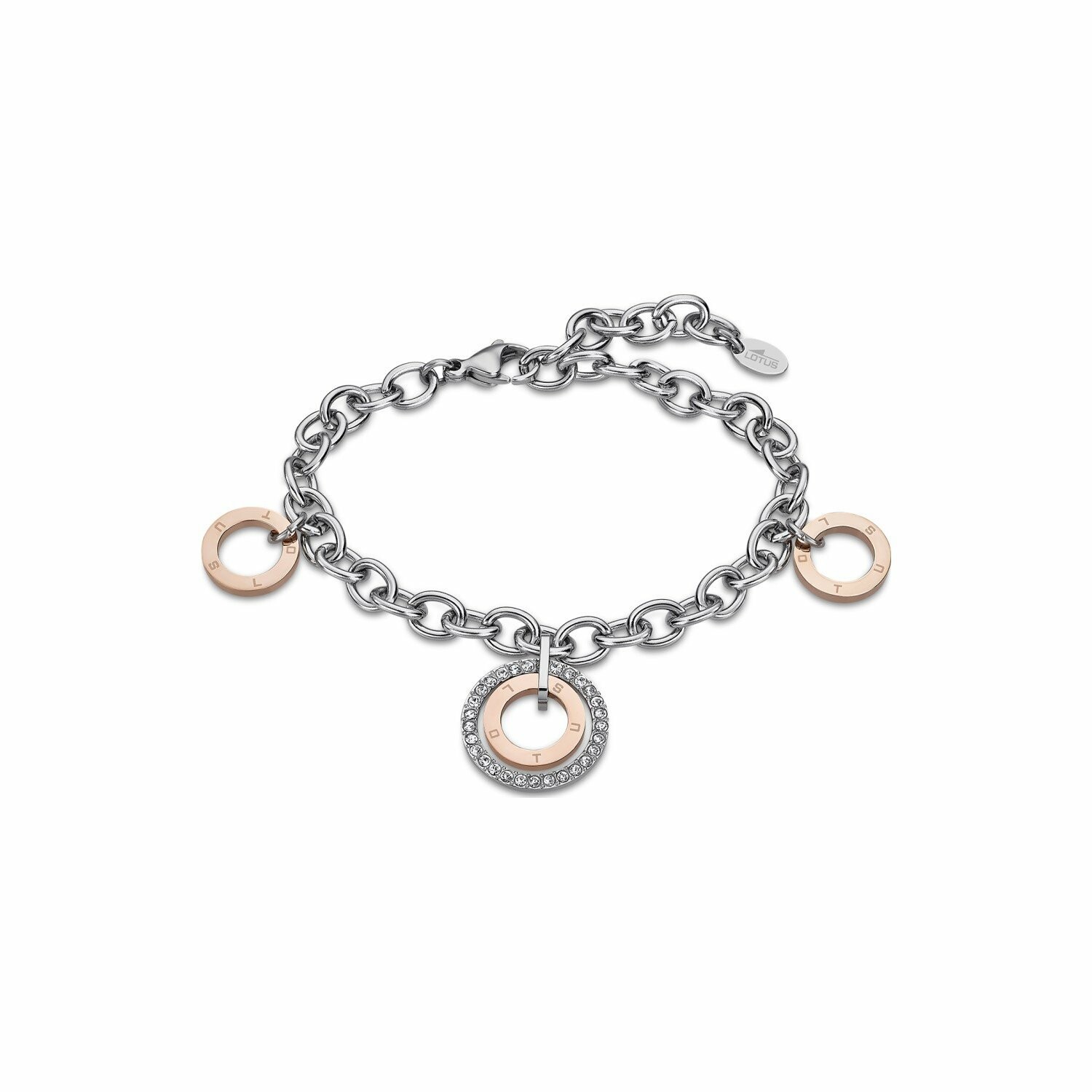 Bracelet Lotus Style Urban Woman en acier, métal doré rose et oxydes de zirconium