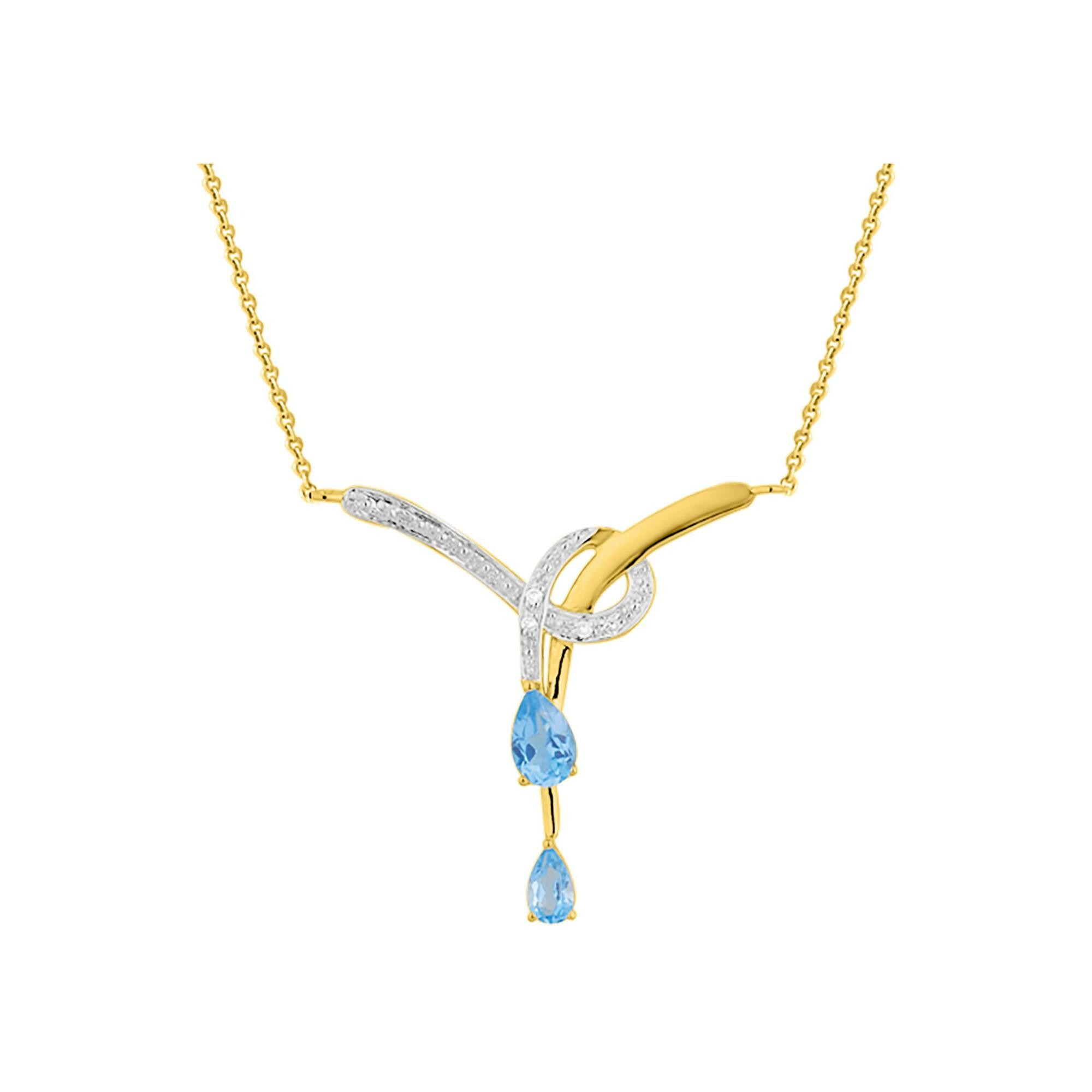 Collier en or jaune, topaze bleue et diamant 0.03ct, taille 42cm