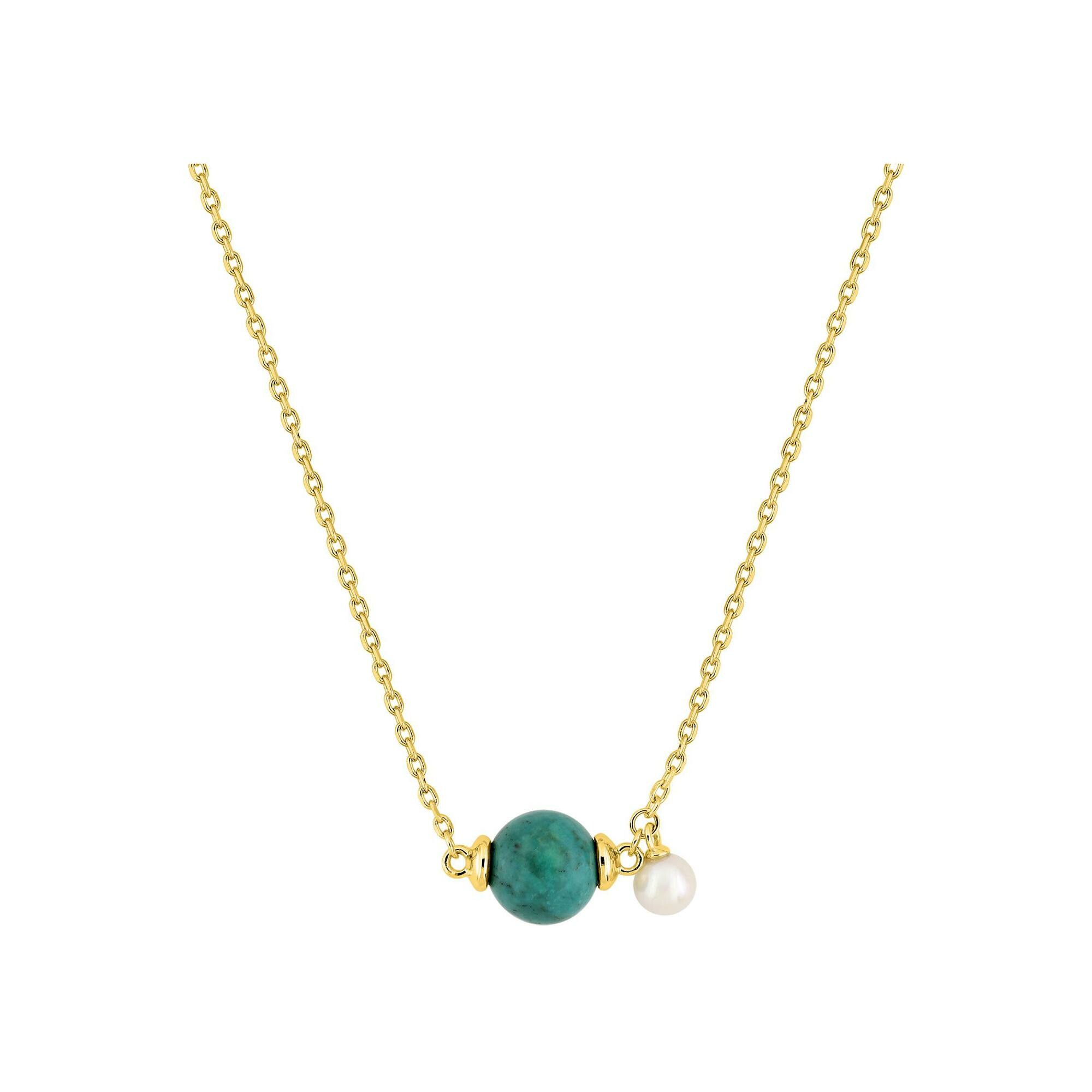 Collier en plaqué or, perle d'imitation et turquoise