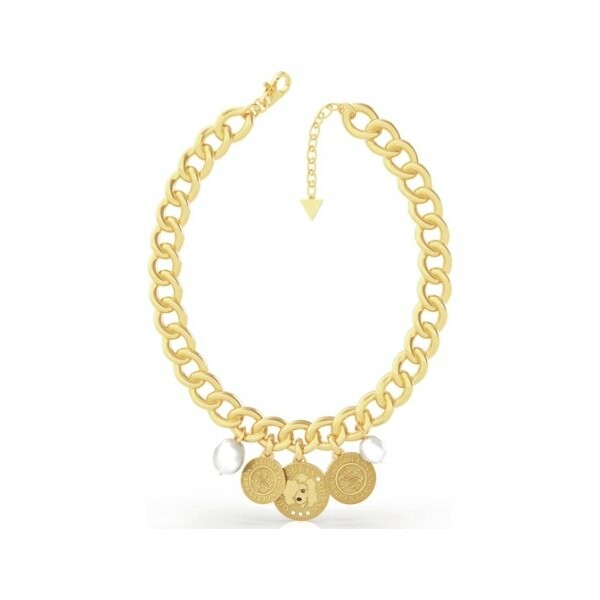 Collier Guess Coin en acier doré, avec pampilles, petit modèle