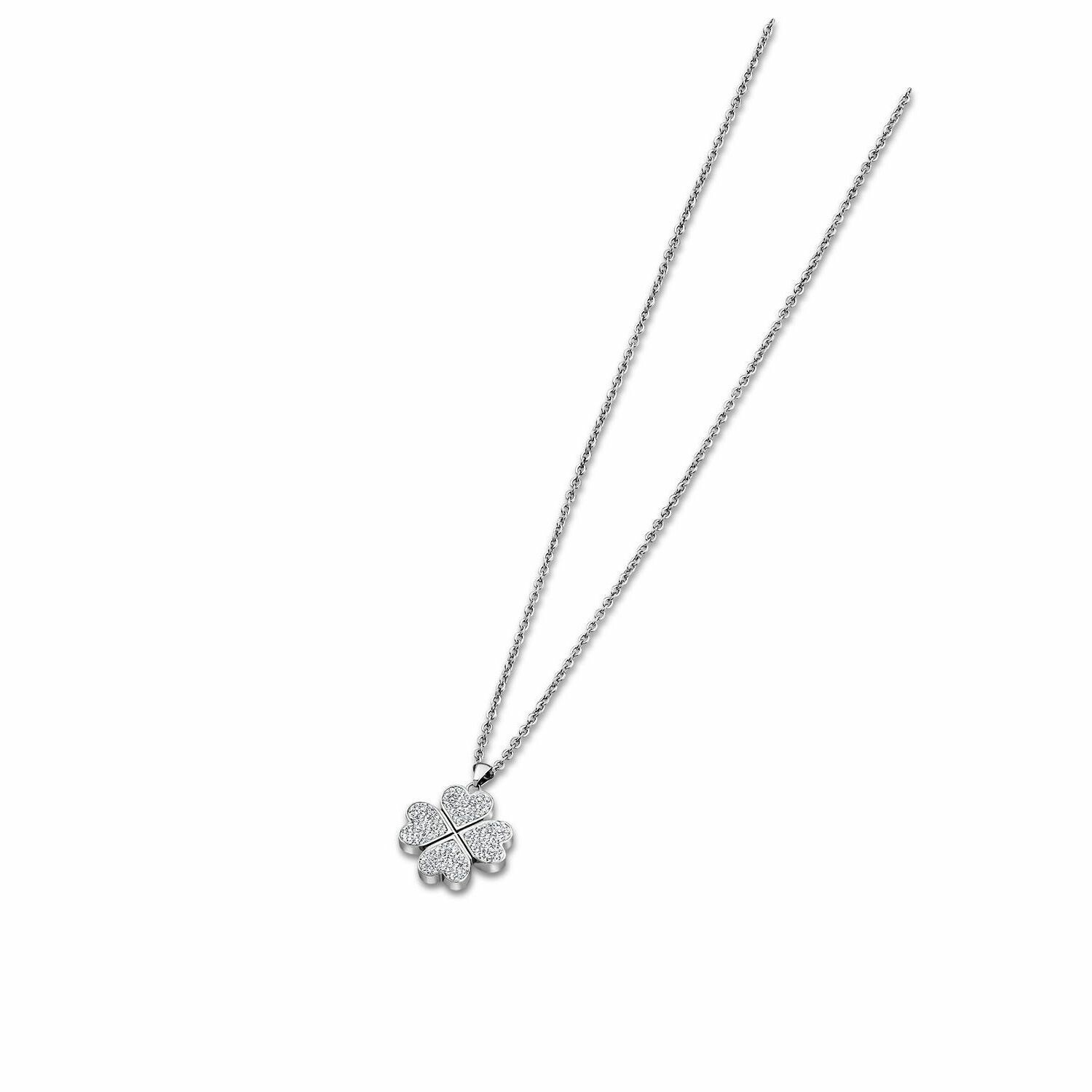 Collier Lotus trèfle en acier et oxyde de zirconium