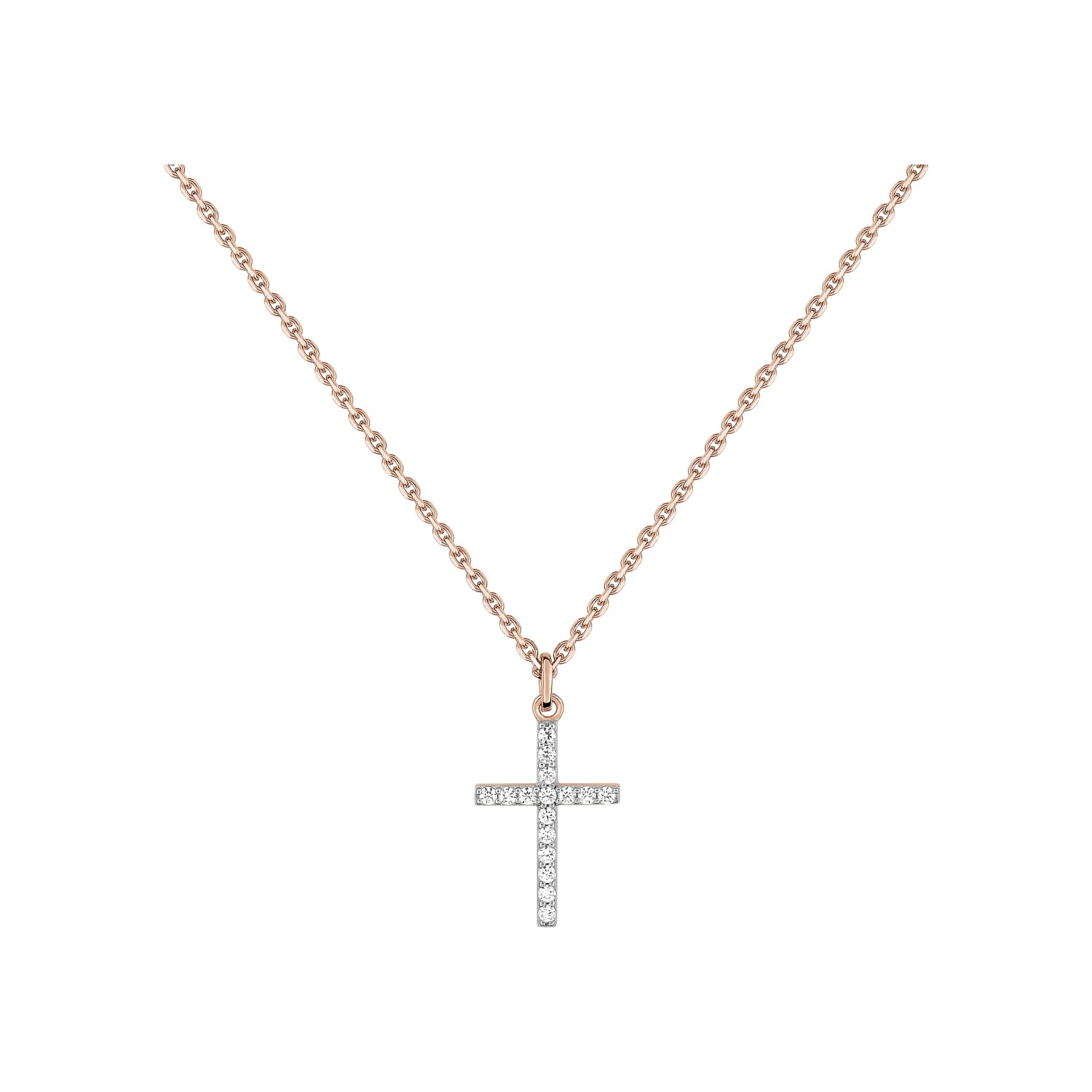 Collier motif croix en plaqué or rose et oxydes de zirconium