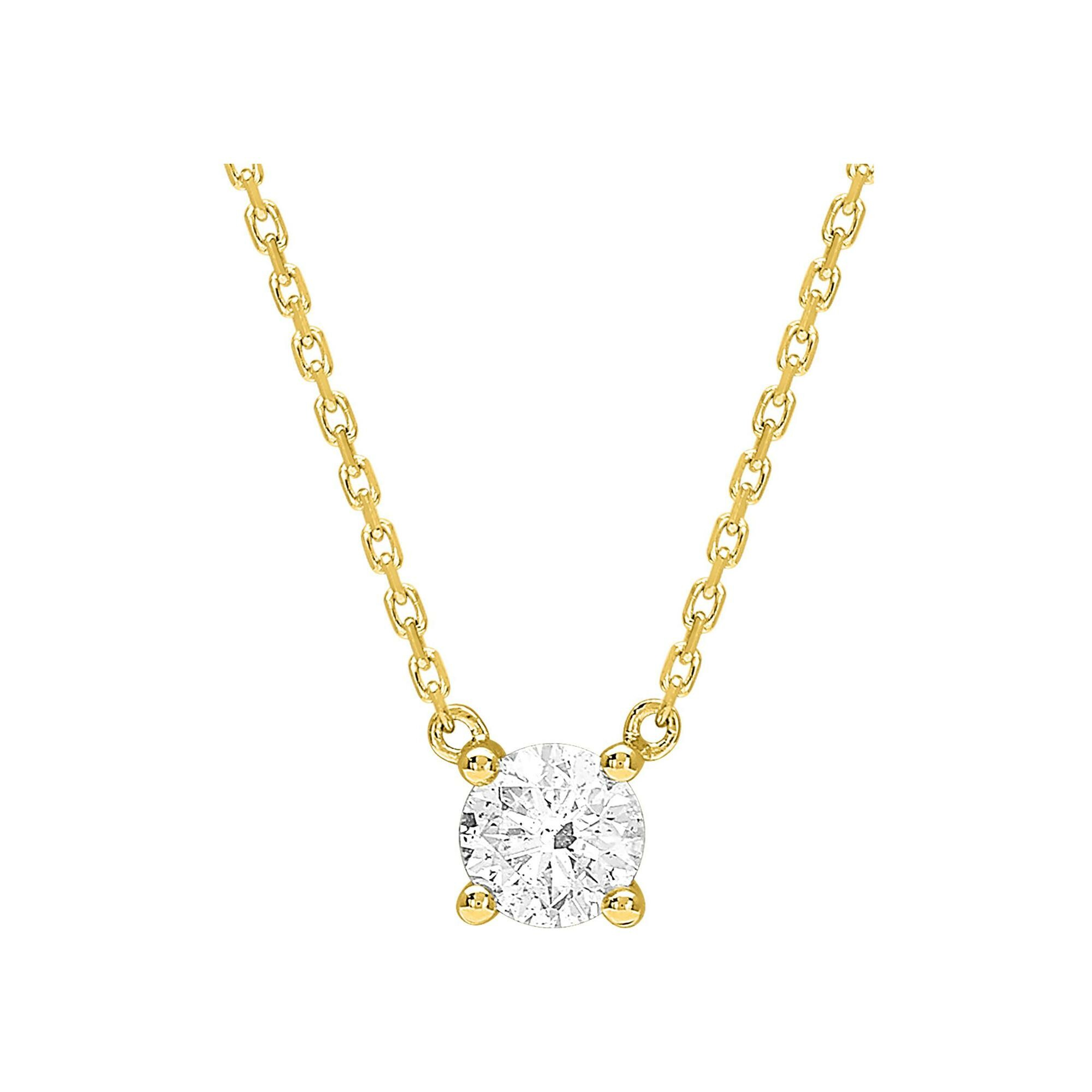 Collier solitaire en or jaune et diamant 0.40ct, taille 42cm