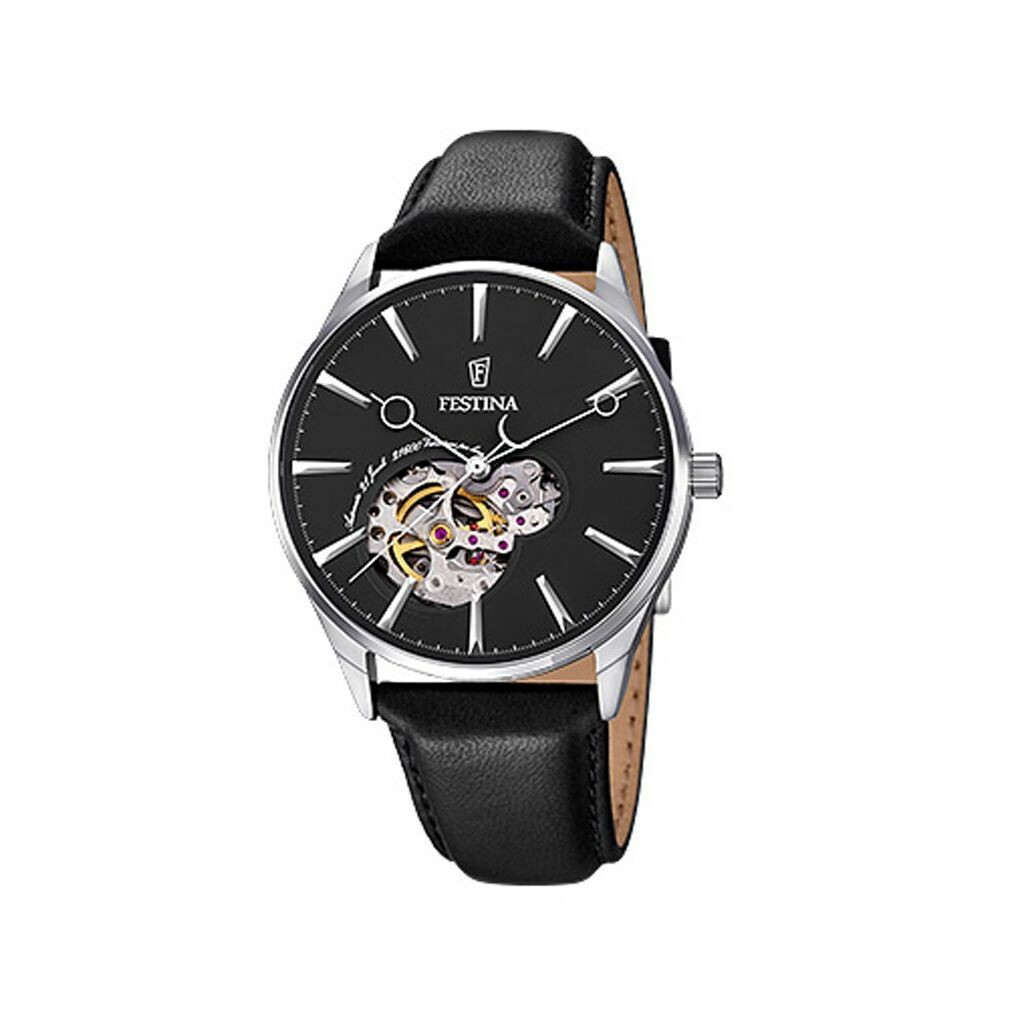 Montre automatique avec boîtier en acier de 41mm et bracelet en cuir. Elle plaira aux hommes voulant porter une montre habillée
