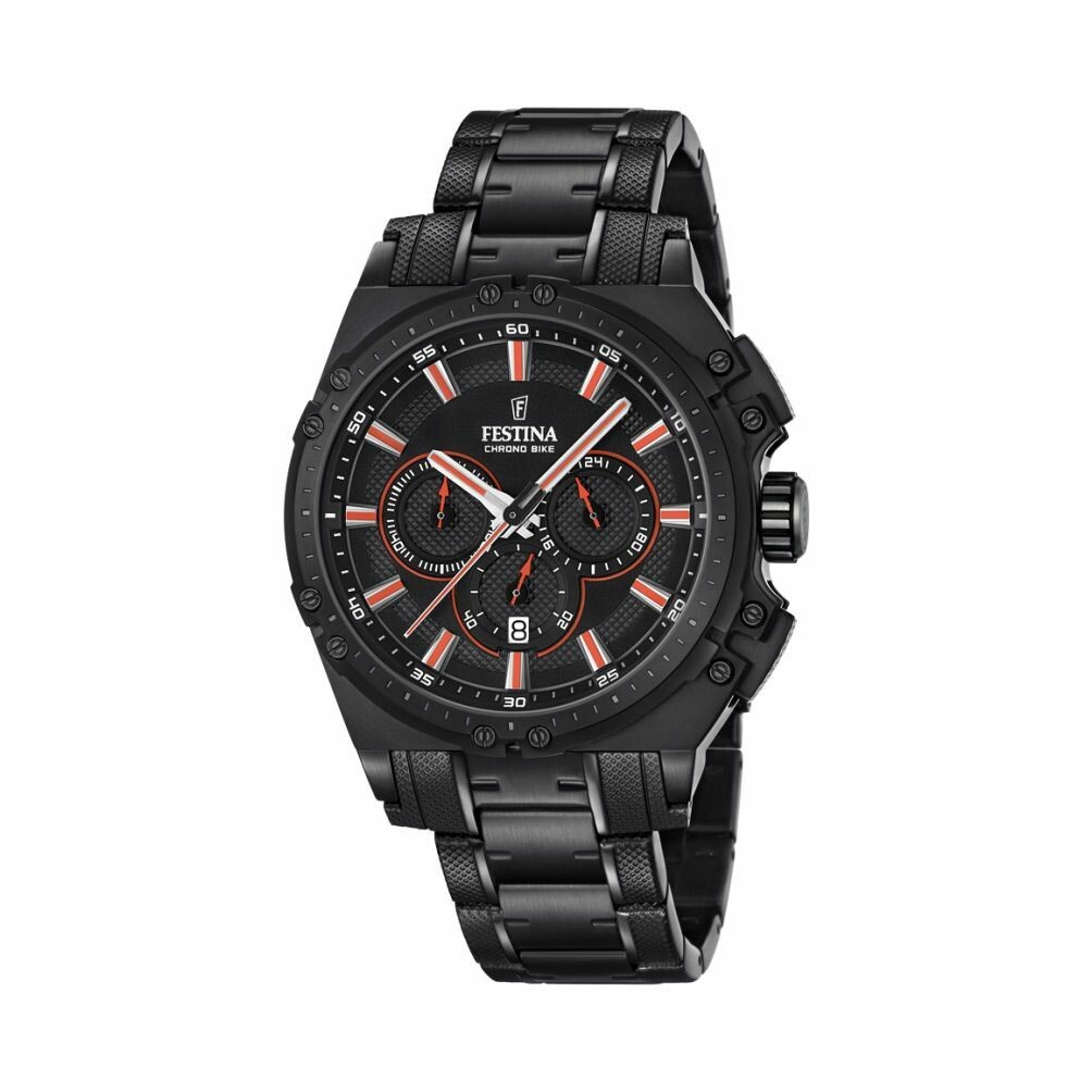 Partenaire connu et respecté des événements sportifs, Festina met à votre service ses technologies de pointe avec cette montre Chrono Bike F16969/4 pour homme. Elle regroupe un mouvement à quartz, des fonctions chronograph et date et une étanchéité jusqu'à 100 mètres (10 bar). Pour autant, les amateurs de belles montres ne seront pas en reste avec son boitier acier 42 millimètres et son bracelet en acier.