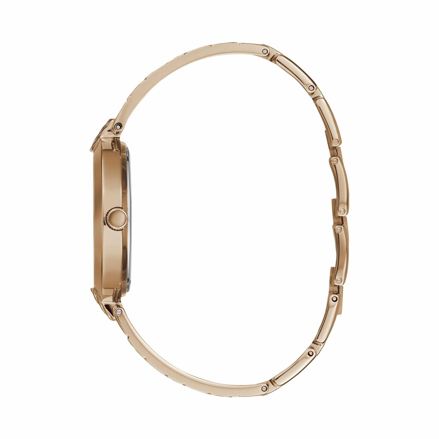 Boîtier acier doré rose brillant, cadran doré rose avec logo 4G, bracelet acier doré rose brillant avec logo 4G, G link, étanche jusqu'à 30 mètres (3 ATM).